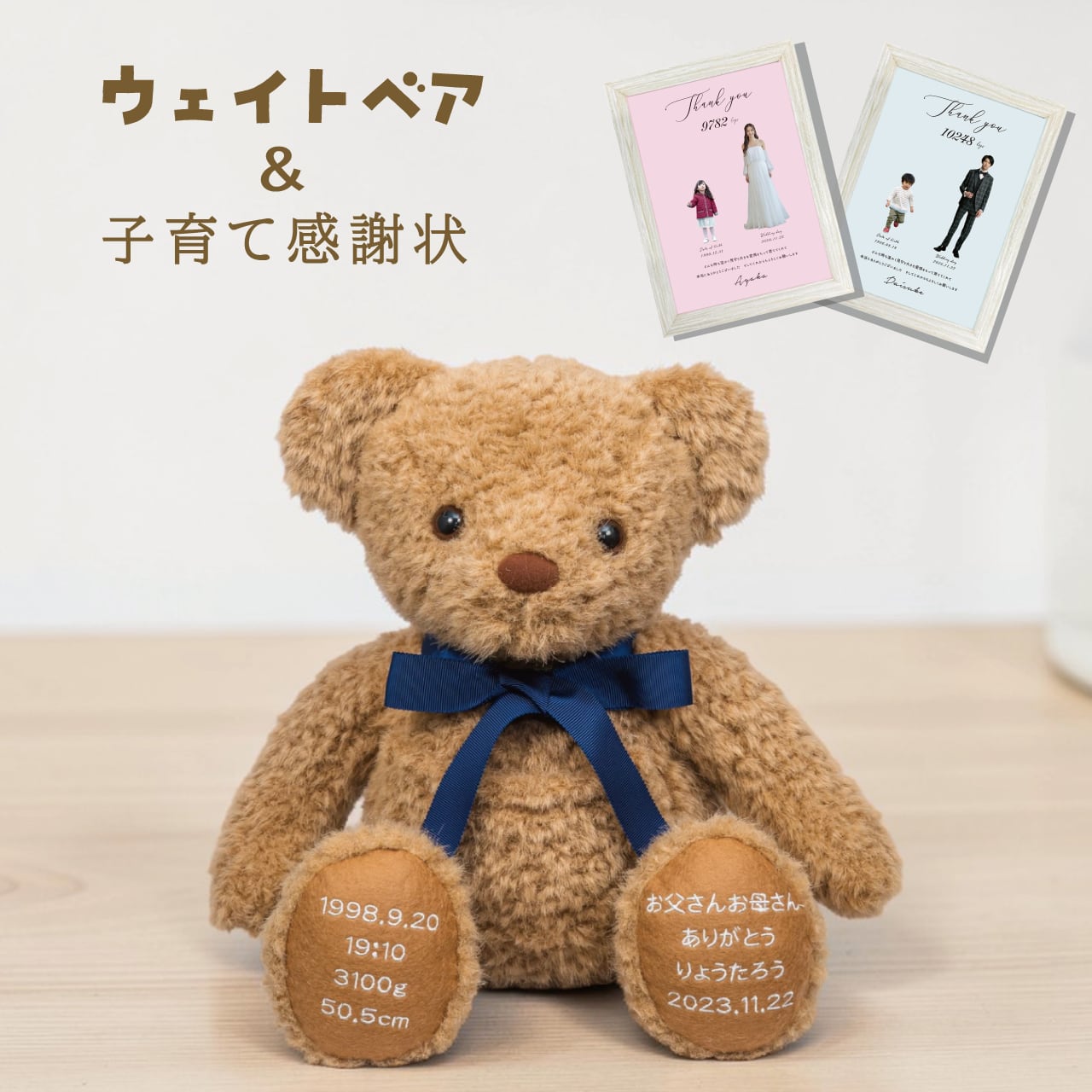 送料無料 【結婚式 両親プレゼント】体重ベア&子育て感謝状セット|出生体重で作る感動ギフト