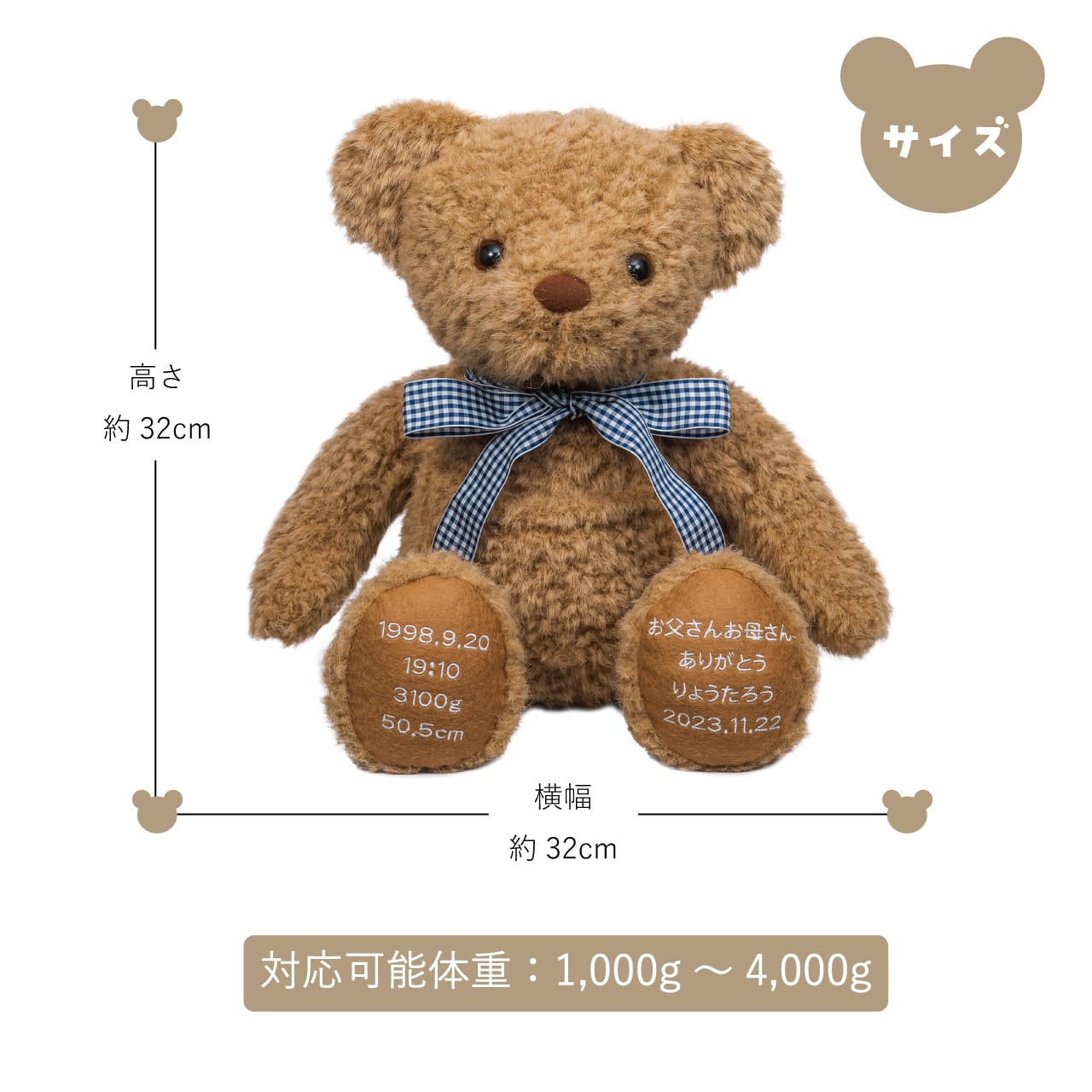 生まれたときの体重をそのまま再現して作る特別なぬいぐるみです。