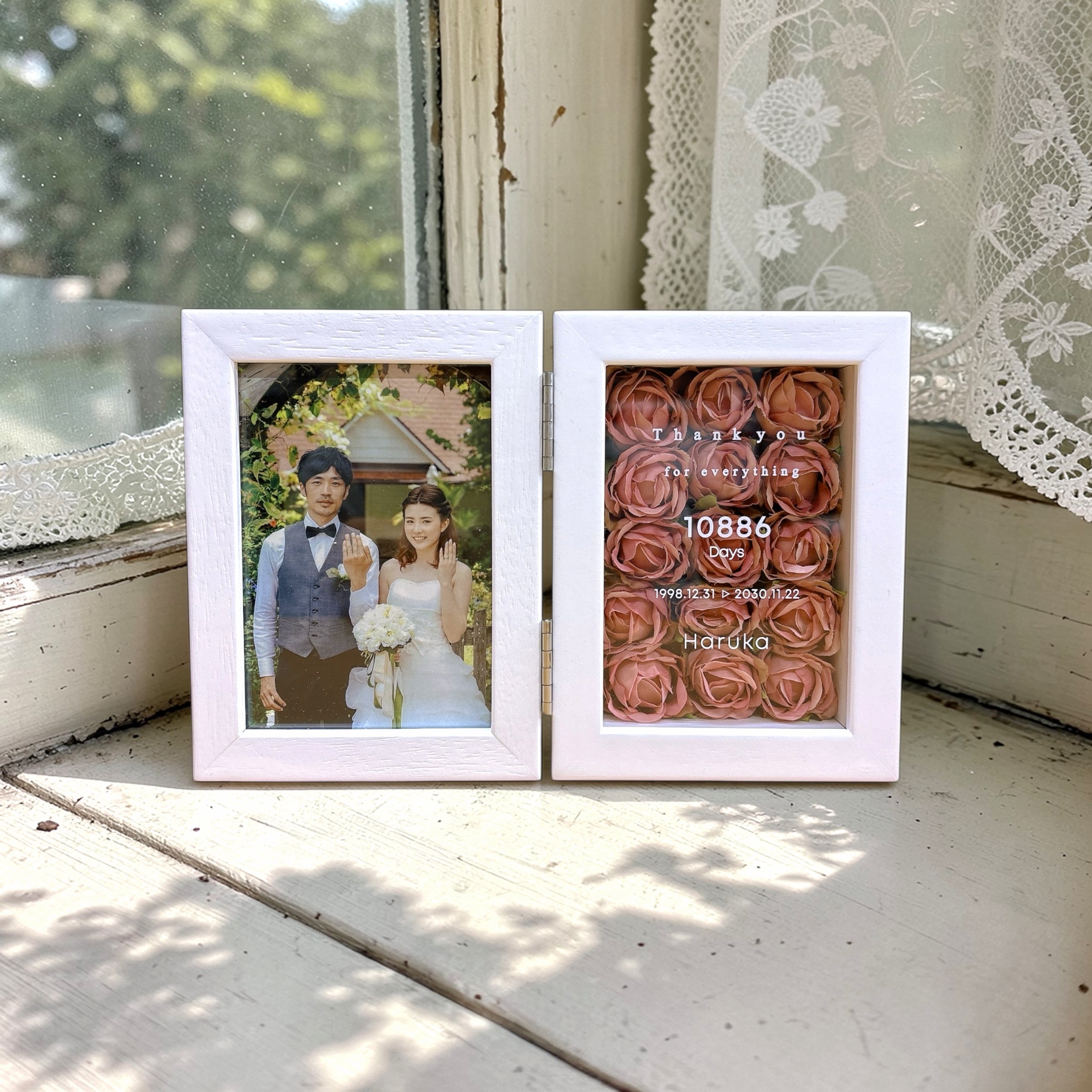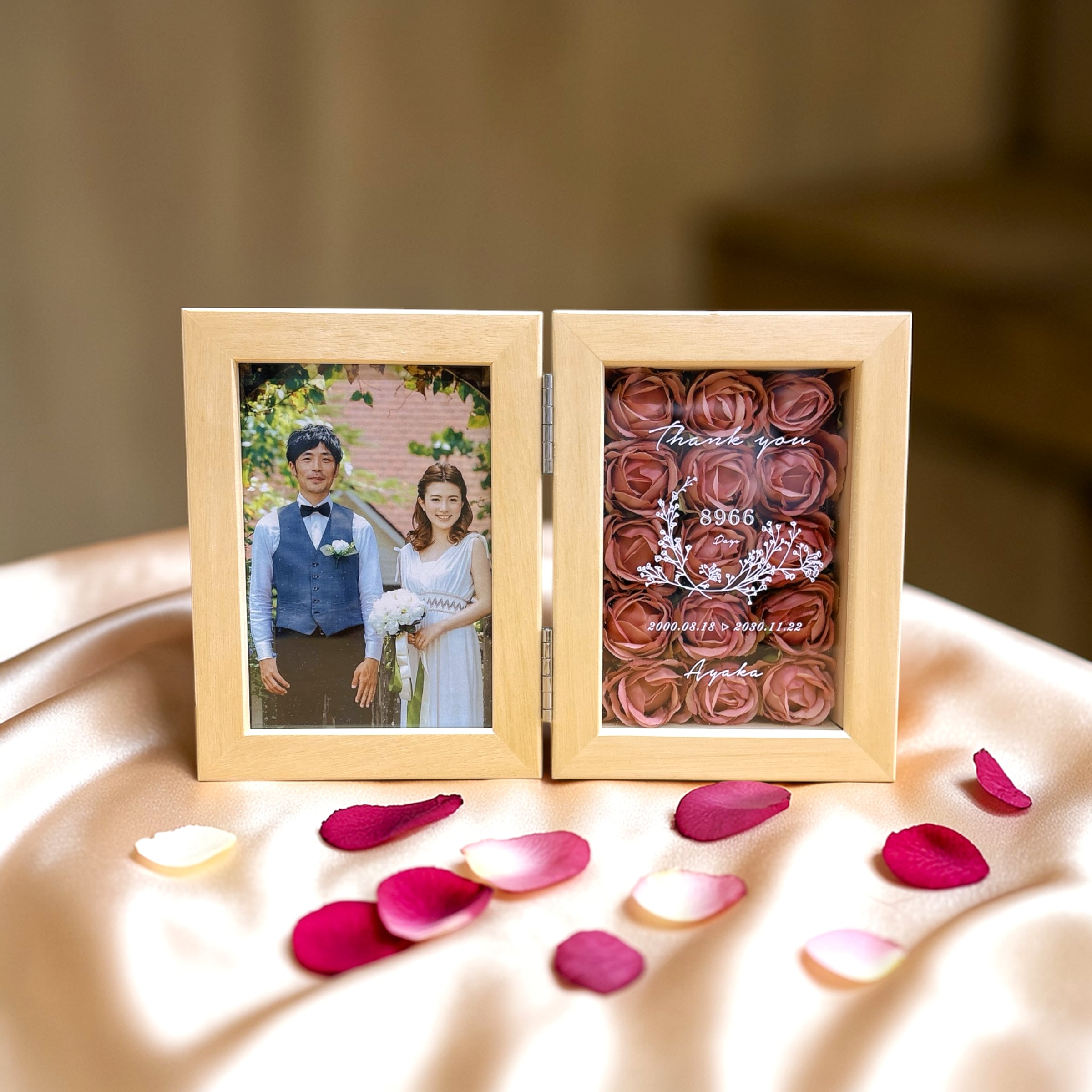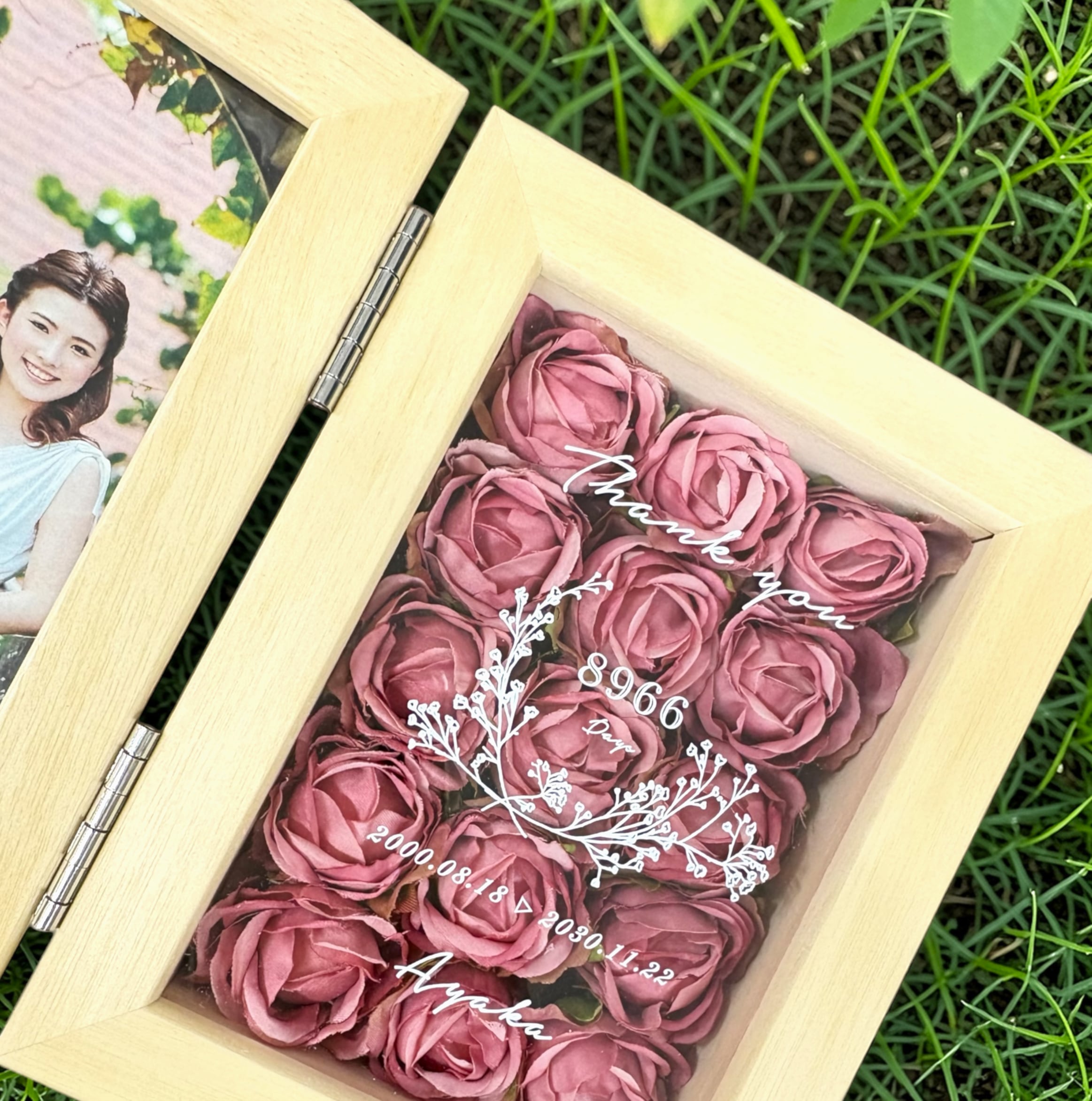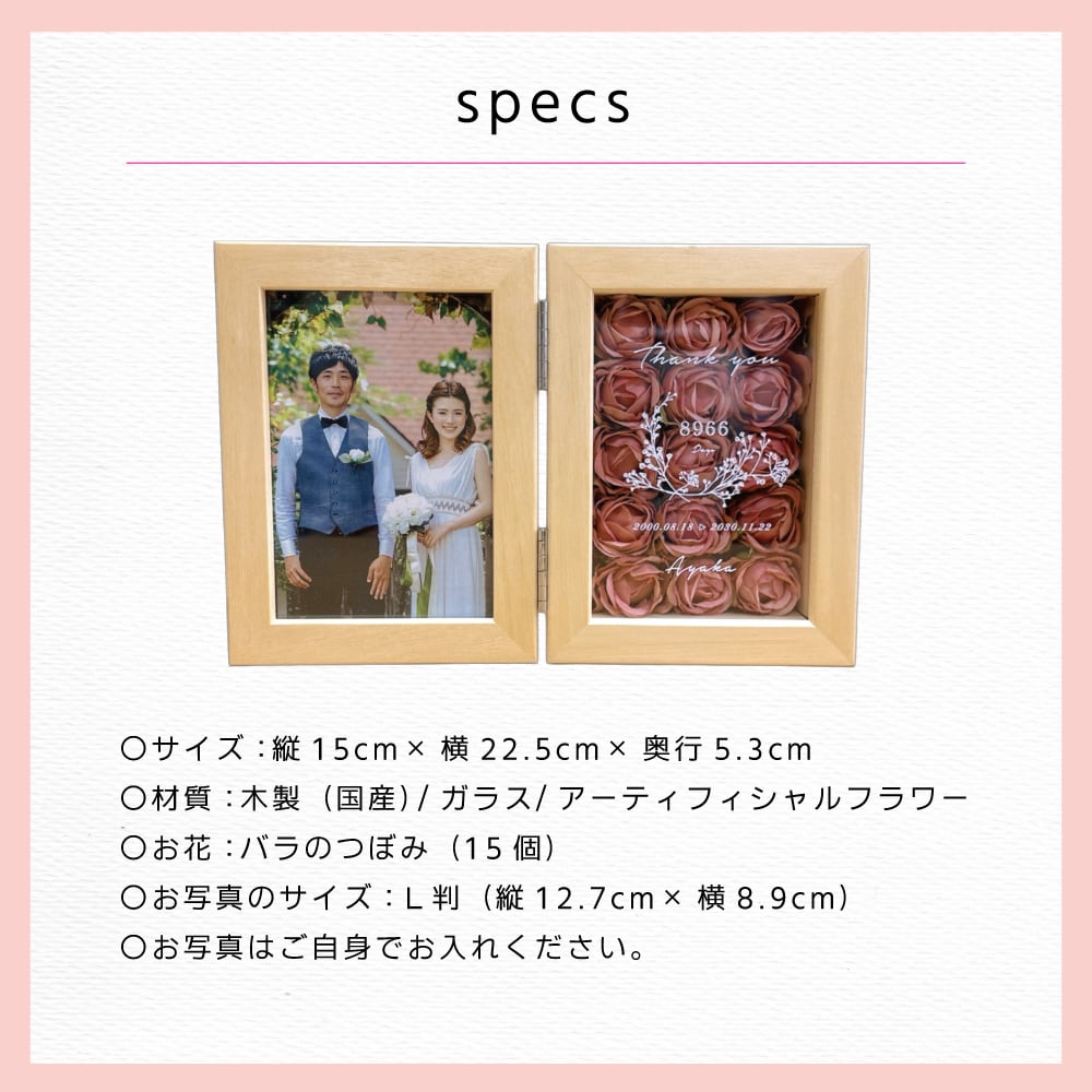子育て感謝状 ローズボックス フォトフレーム 両親贈呈品 結婚式 プレゼント 写真入り 名入れ 花 感謝状 ギフト