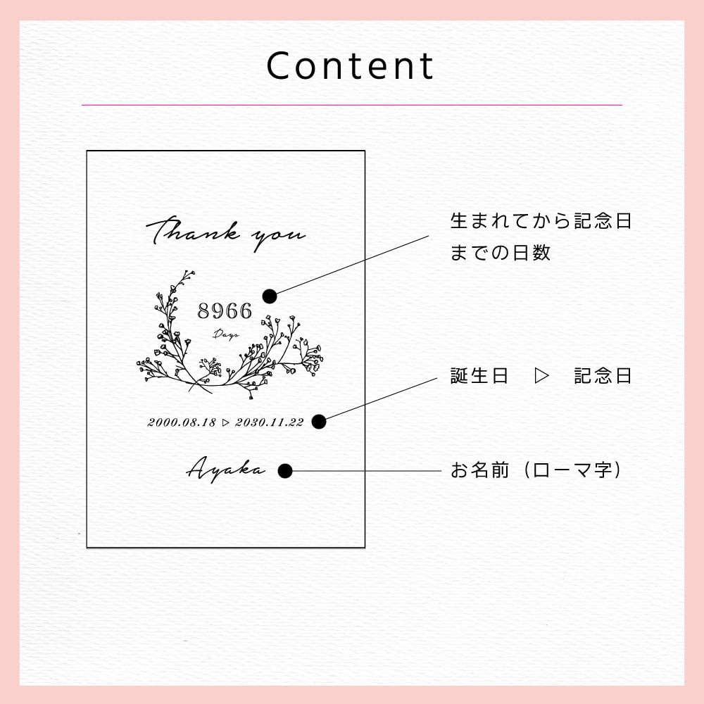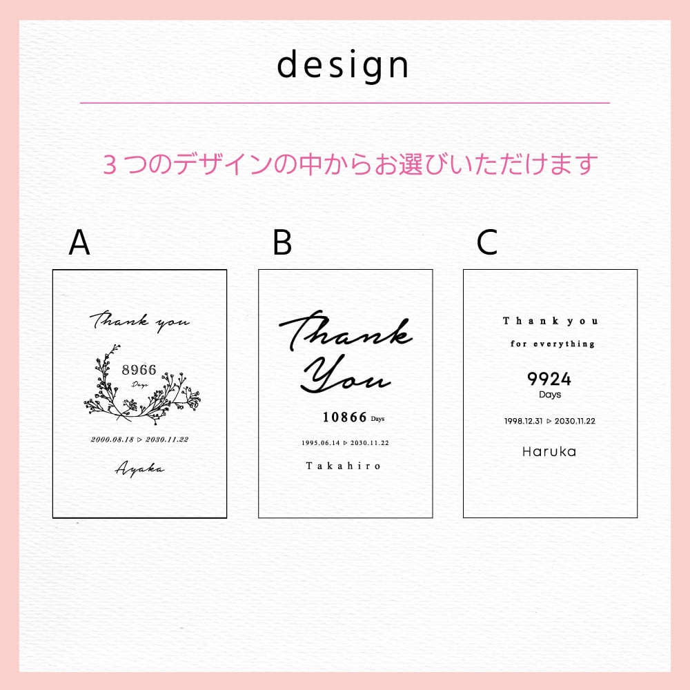 ・挙式日 ・生年月日 ・お名前(ローマ字)